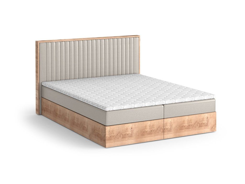 Součástí postele je matrace s bonellovou pružinou, která zajišťuje pevnou, rovnoměrnou oporu po celé ploše lůžka a dlouhou životnost. Komfort dále zvyšuje vrchní topper, jenž změkčuje ložnou plochu, vyrovnává tlak těla a přispívá k lepší hygieně spaní.