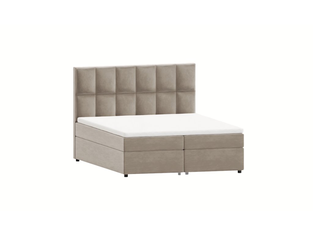 Postel je vybavena kvalitní matrací s bonellovými pružinami a vysoce elastickou pěnou pro maximální pohodlí. Čalouněné čelo o výšce 65 cm poskytuje stabilní oporu při čtení nebo relaxaci. Dva velké úložné boxy (31 × 86 × 196 cm) nabídnou dostatek místa na peřiny, polštáře nebo sezónní oblečení.