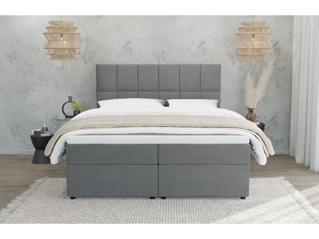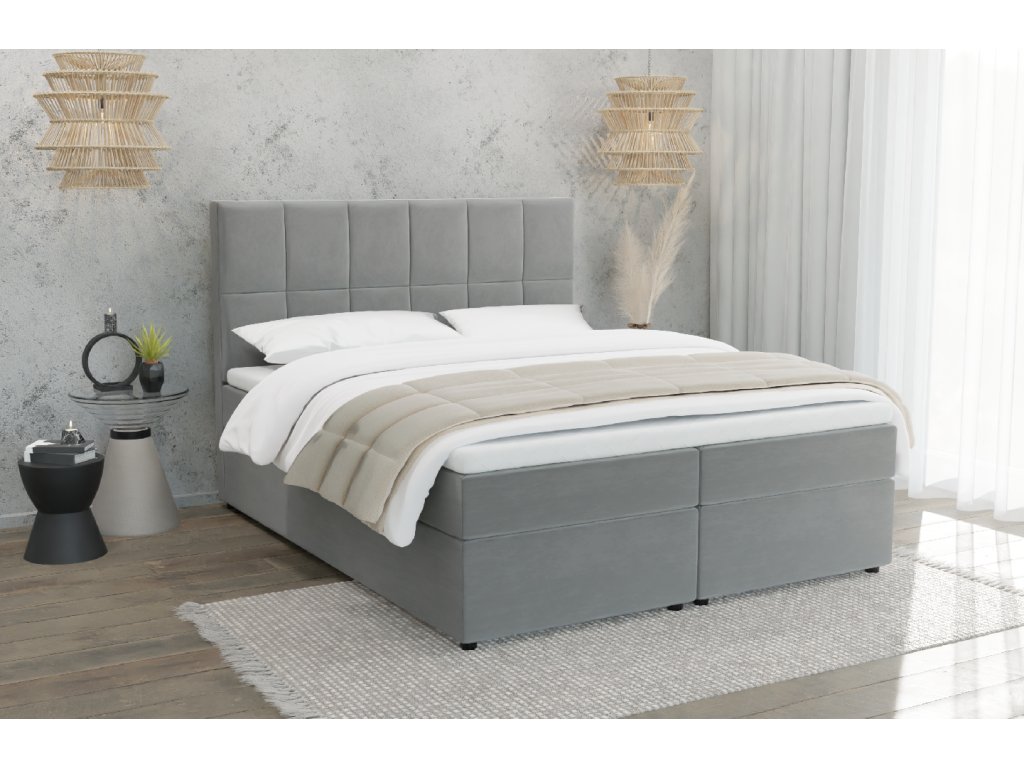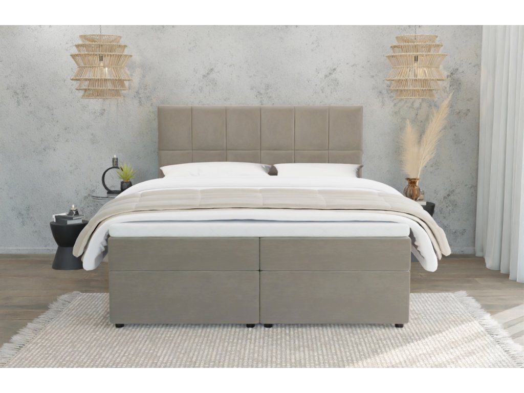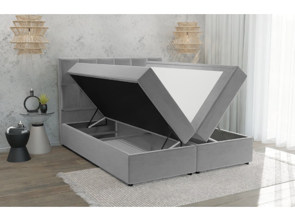 Postel je vybavena kvalitní matrací s bonellovými pružinami a vysoce elastickou pěnou pro maximální pohodlí. Čalouněné čelo o výšce 65 cm poskytuje stabilní oporu při čtení nebo relaxaci. Dva velké úložné boxy (31 × 96 × 196 cm) nabídnou dostatek místa na peřiny, polštáře nebo sezónní oblečení.