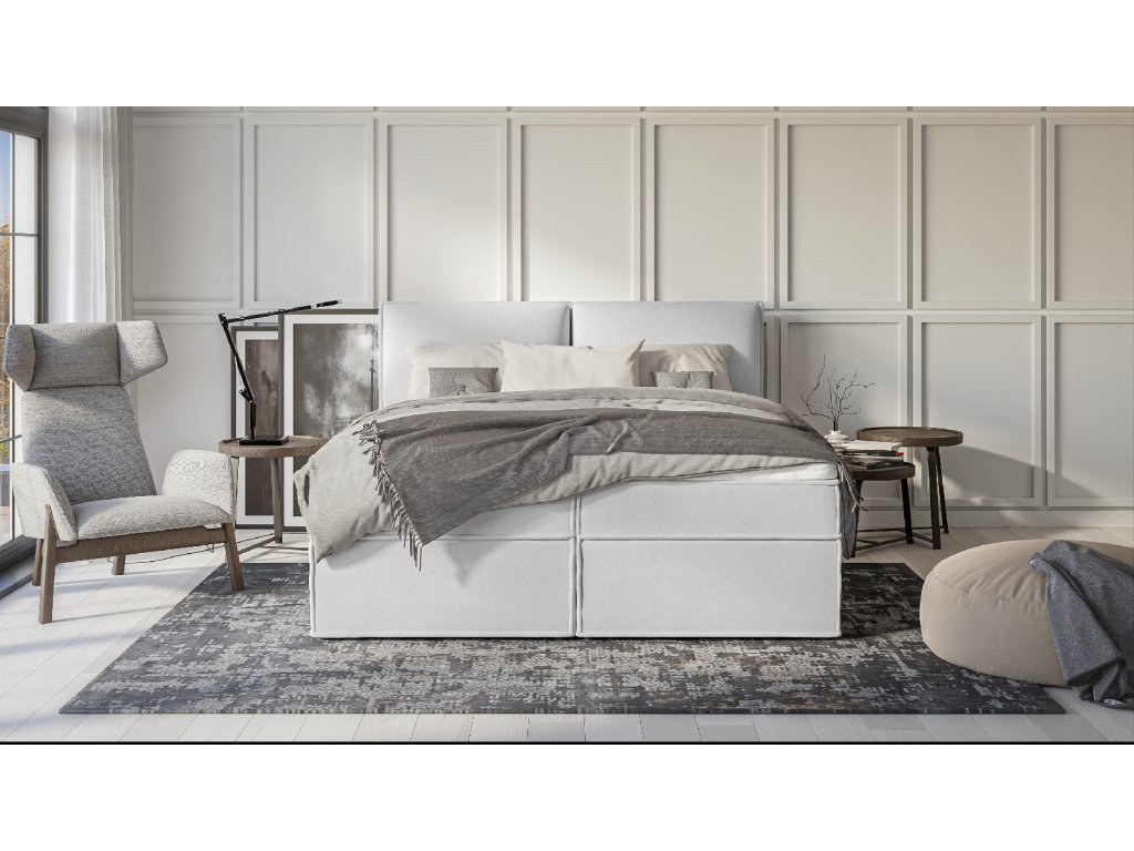 Matrace postele s kombinací bonellových pružin a vysoce elastické pěny zajišťuje rovnoměrnou oporu těla a příjemný spánek. Sed o výšce 57 cm usnadňuje vstávání a čalouněné čelo o výšce 46 cm poskytuje pohodlnou oporu při čtení nebo relaxaci. Postel disponuje dvěma prostornými úložnými boxy (31 × 86 × 196 cm (2×)), které nabídnou dostatek místa pro lůžkoviny či sezónní věci.