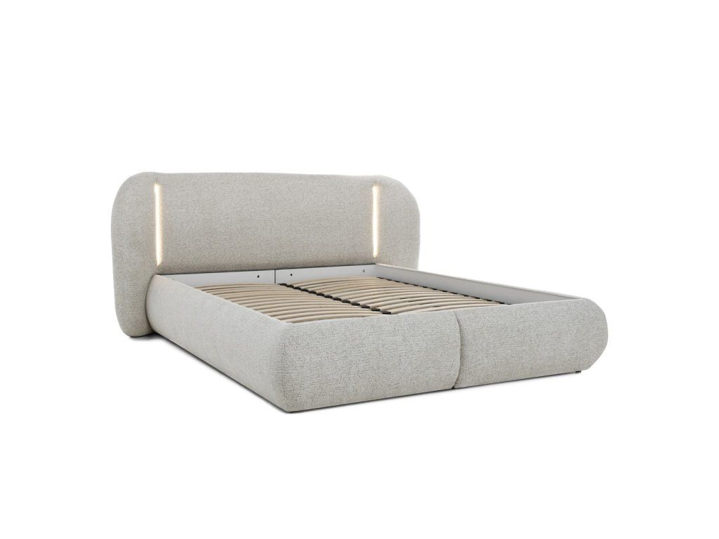 Výrazným benefitem je integrované LED osvětlení zabudované v čele postele, které vytváří příjemnou ambientní atmosféru. Světlo slouží jako praktické orientační osvětlení i stylový doplněk, jenž podtrhuje moderní charakter celé postele.
