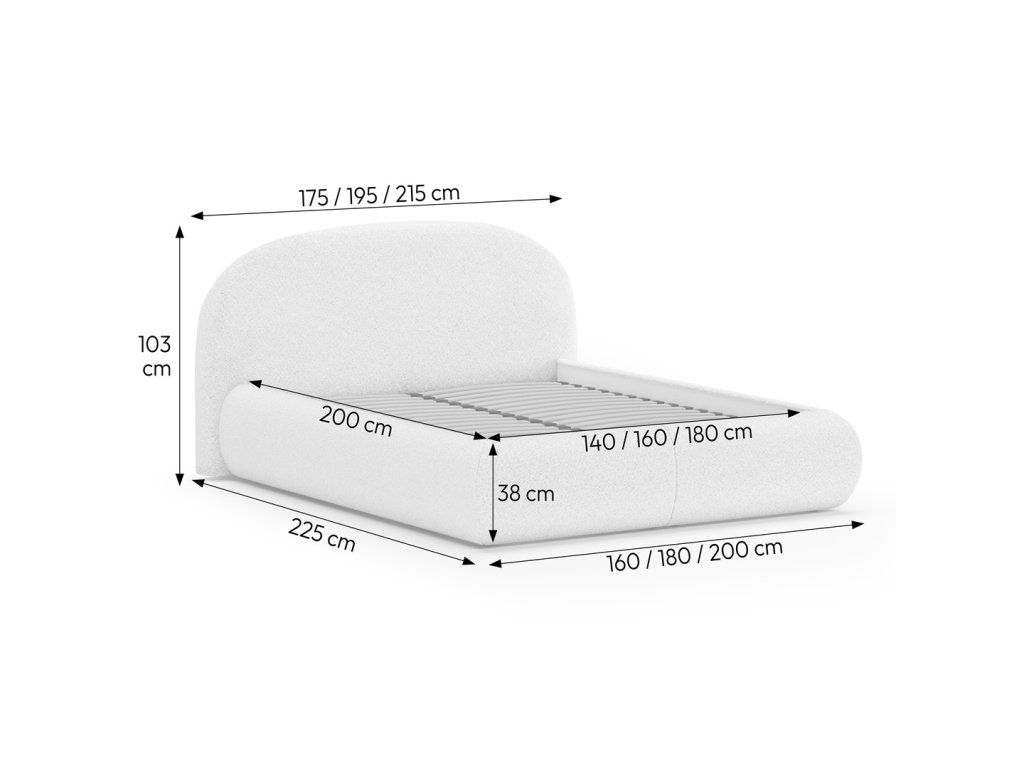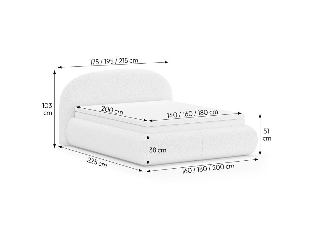 Čalouněná postel 180x200 cm s úložným prostorem, matrací a topperem je ideální volbou pro ty, kteří hledají maximální komfort a dostatek prostoru pro ničím nerušený spánek. Elegantní oblé linie a vysoké čelo vytvářejí výrazný designový prvek, který se stane dominantou každé moderní ložnice.