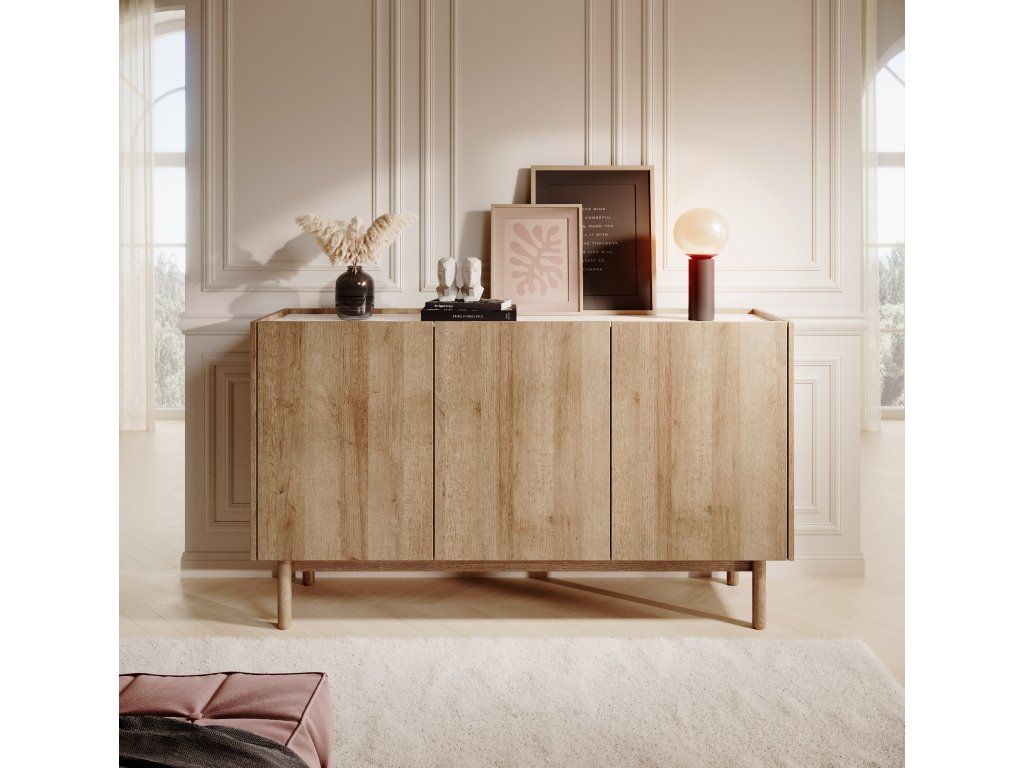 Komoda Boho 144 cm v barevném provedení dub riviéra a bílý mramor je ideální volbou pro ty, kteří hledají praktický úložný prostor s moderním a elegantním vzhledem, který podtrhne styl každého interiéru.
