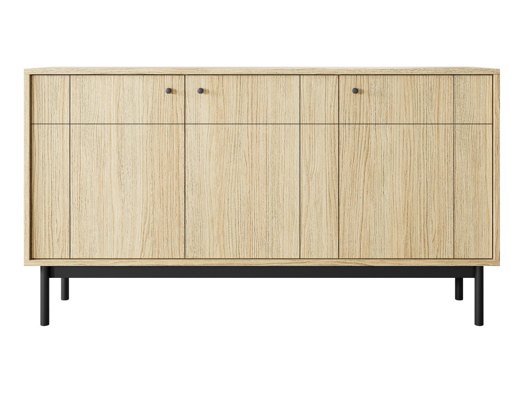 Komoda nabízí velkorysý úložný prostor rozdělený do šesti uzavřených přihrádek, které jsou ideální pro uložení nádobí, dokumentů, textilu nebo dalších domácích nezbytností. Štíhlé kovové nožky v černé barvě dodávají nábytku lehkost a usnadňují úklid pod komodou.
