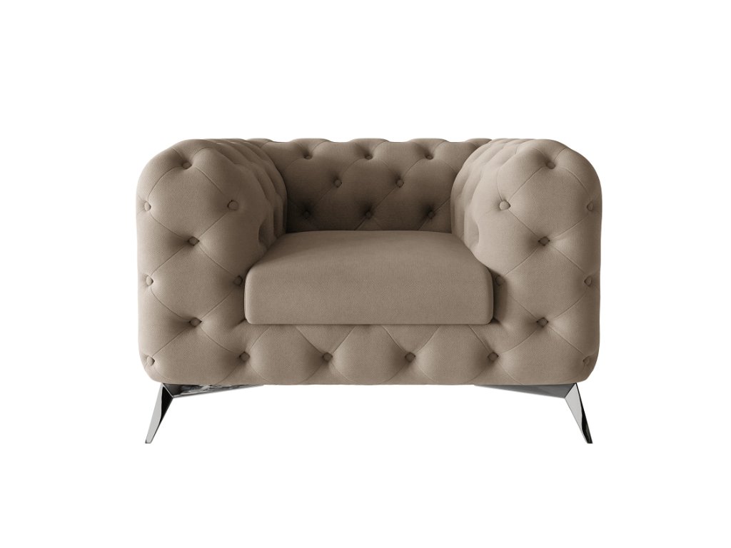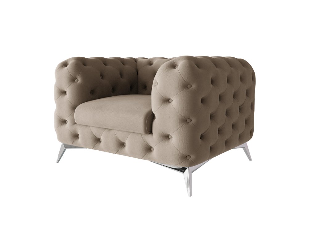 Elegantní Chelsea křeslo je stvořené pro chvíle absolutního pohodlí i pro stylový interiér. Díky svým rozměrům nabídne štědrý prostor k sezení a zároveň působí nadčasově a vzdušně. Vysoké kovové nohy v provedení chrom nebo matně černá dodávají nábytku lehkost a moderní charakter, zatímco kvalitní čalounění se postará o maximální komfort.