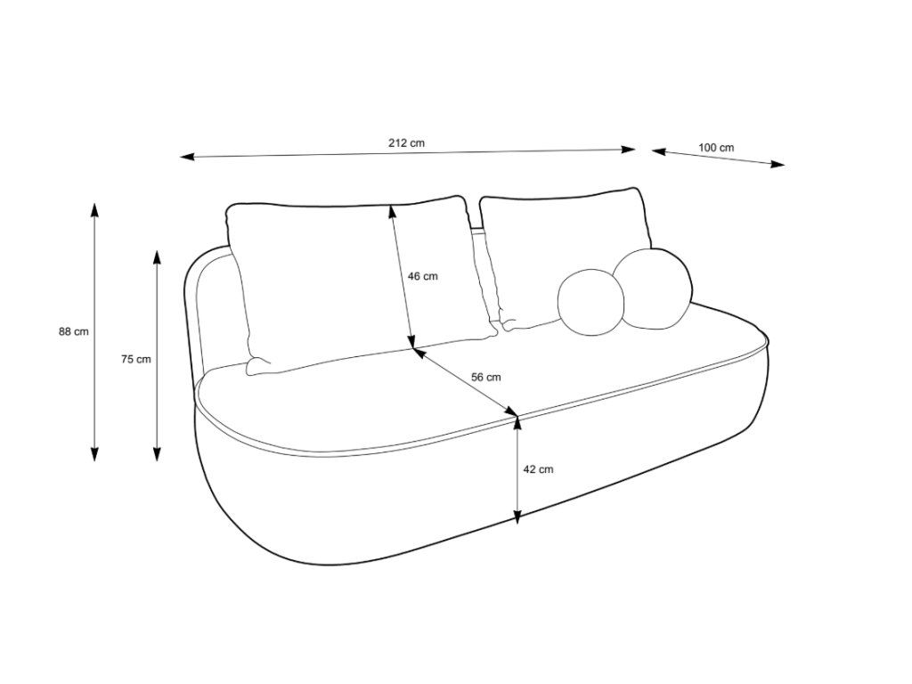 Pohovka nabízí dostatek prostoru pro pohodlné každodenní sezení i relaxaci. Měkké opěrné polštáře, hlubší sed a příjemně tvarované linie zajišťují vysoký komfort při odpočinku.