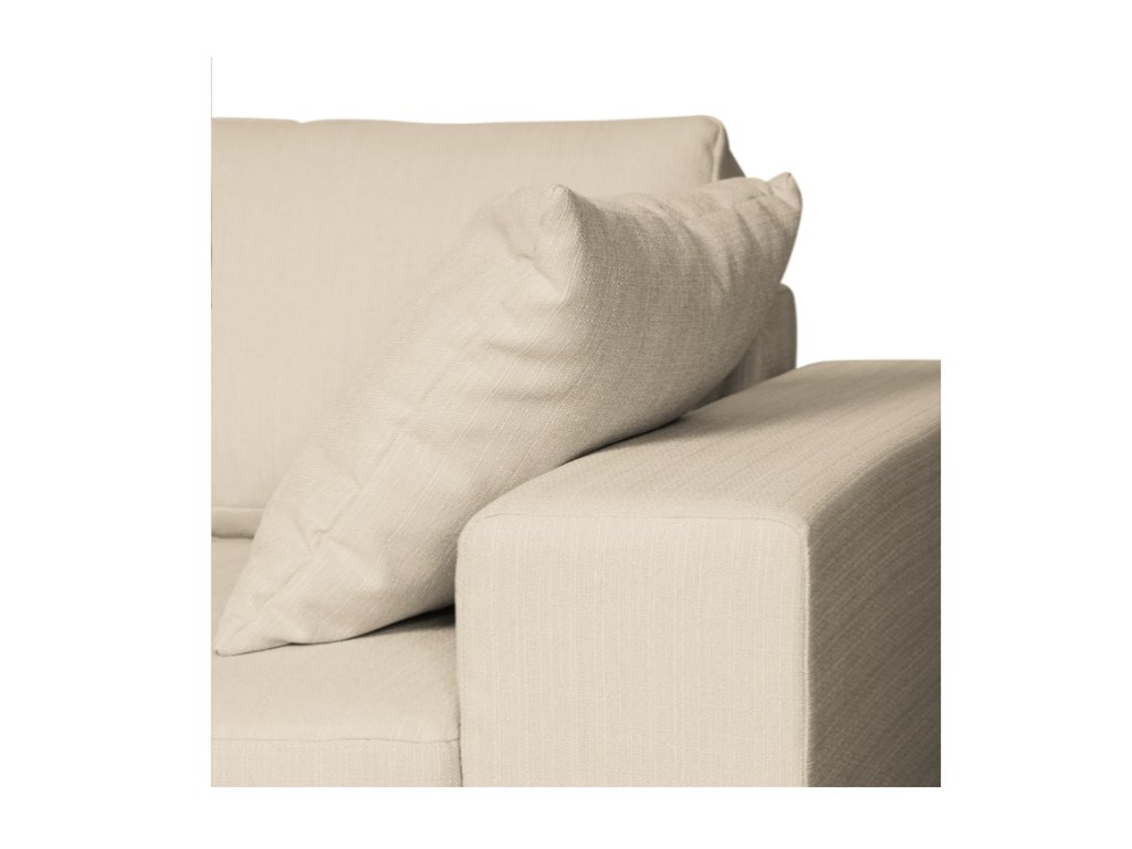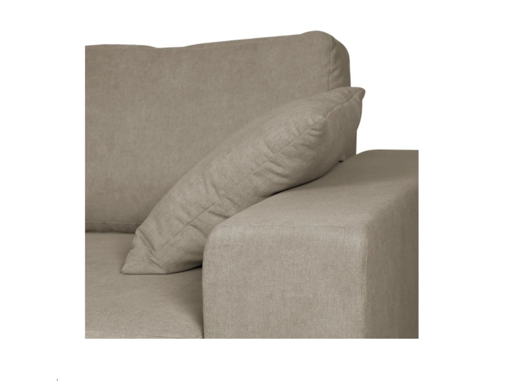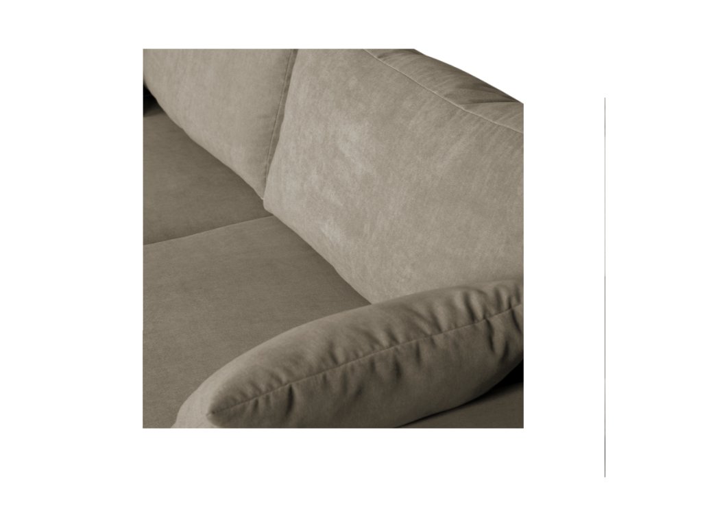 Sedák je vyplněn vysoce elastickou polyuretanovou pěnou, která se dokonale přizpůsobuje tělu a spolu s vlnitými pružinami zajišťuje komfortní a dlouhotrvající sezení. Volné opěradlové polštáře dodávají extra podporu zad a umožňují nastavení podle vašich preferencí. Pohovka poskytuje dostatek místa pro tři osoby a díky ergonomickému sedu podporuje správné držení těla i při delším odpočinku.