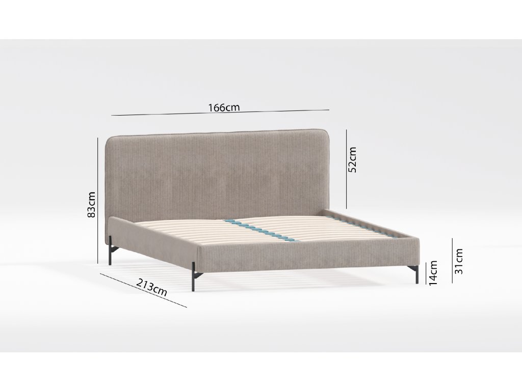 Postel je vybavena kvalitním roštem z březové překližky, který poskytuje optimální podporu matrace (matrace není součástí). Čelo postele je vyplněno vysoce elastickou polyuretanovou pěnou a rám postele kombinuje masivní dřevo, MDF, HDF, dřevotřísku a překližku, což zajišťuje stabilní a pohodlnou konstrukci.