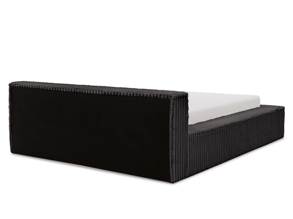 Postel disponuje zvedacím lamelovým roštem na pevném dřevěném rámu, pod kterým najdete dva velké úložné prostory (18 × 160 × 100 cm). Ideální pro lůžkoviny, deky i sezónní věci, které chcete mít po ruce, ale zároveň schované. Čalouněné čelo s výplní z vysoce elastické pěny poskytne pohodlnou oporu při večerním čtení nebo sledování TV.