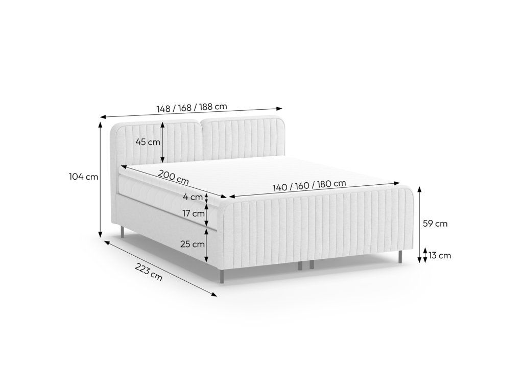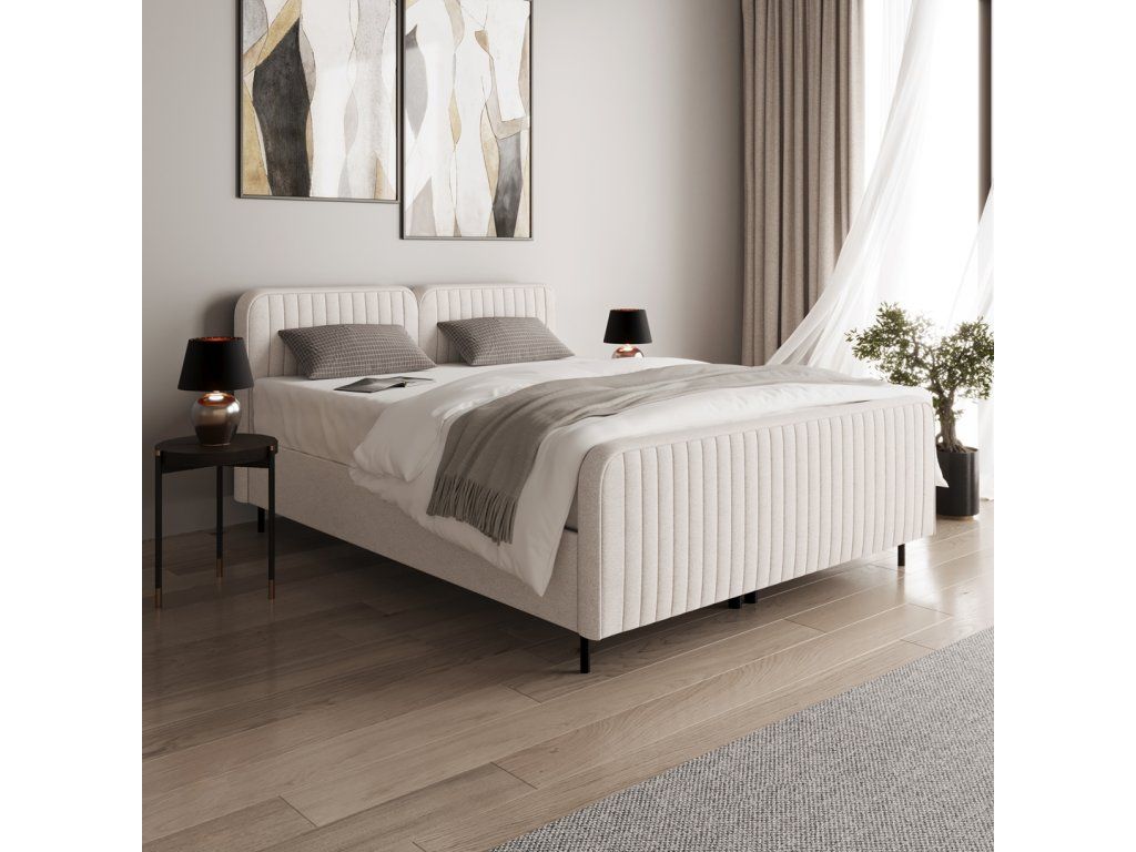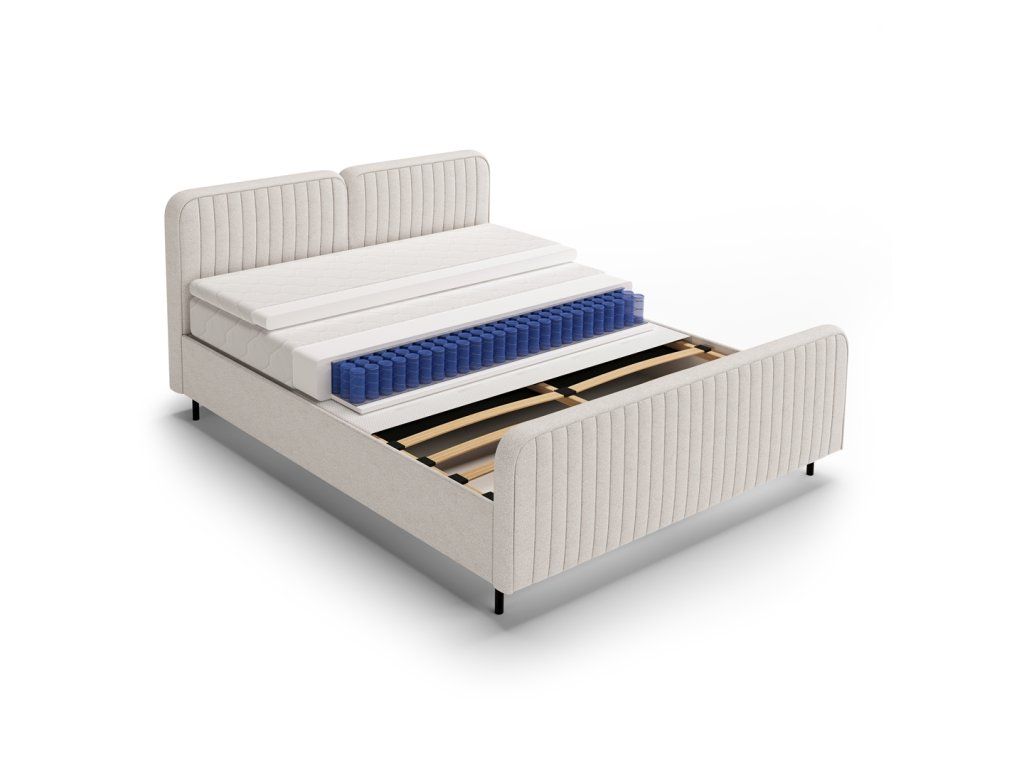 Součástí postele je kvalitní matrace doplněná o vrchní topper, který zvyšuje komfort při spánku, pomáhá rovnoměrně rozložit tlak těla a přispívá k delší životnosti matrace. Postel je tak připravena k okamžitému používání bez nutnosti dokupovat další vrstvy.