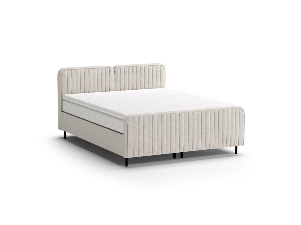 Dominantou postele je výrazné čalouněné čelo složené ze dvou samostatných panelů se svislým lamelovým prošitím. Tento designový prvek dodává posteli moderní, nadčasový vzhled a vytváří reprezentativní atmosféru v ložnici. Na zadní čelo navazuje i přední čelo ve stejném stylu, což zajišťuje jednotný a luxusní vzhled ze všech stran.