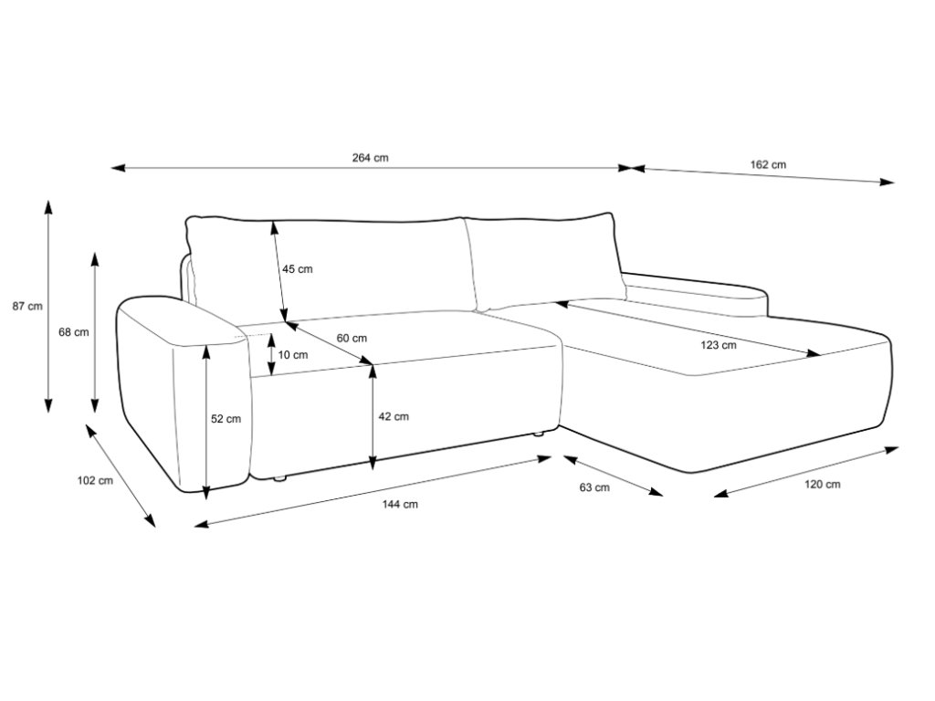 Hloubka (delší strana / otoman): 162 cm