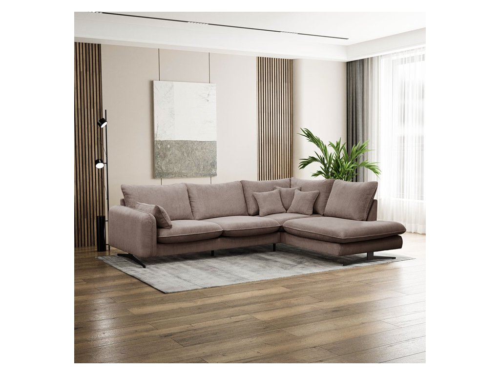 Provedení do tvaru L poskytuje velkorysou sedací plochu, která je vhodná jak pro rodinné posezení, tak pro odpočinek s nataženými nohami. Pohodlí zajišťují měkké sedáky v kombinaci s opěrnými polštáři, které poskytují příjemnou oporu zad při sezení.