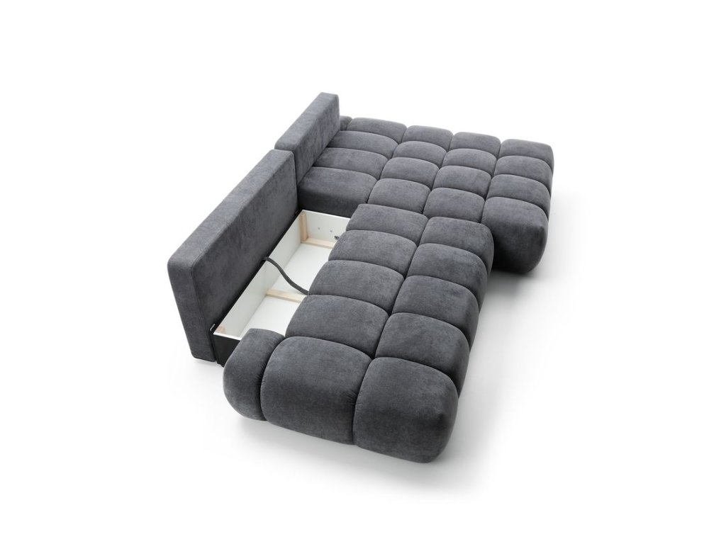 Sedací souprava je vybavena praktickou funkcí rozkladu, díky které během chvilky vytvoříte komfortní spací plochu. Nechybí ani integrovaný úložný prostor, ideální pro uschování lůžkovin, dek či sezónních textilií.