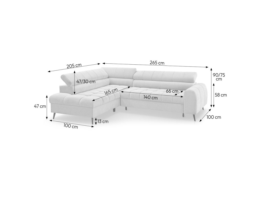 Provedení do tvaru L nabízí dostatek prostoru pro pohodlné sezení i relaxaci. Rohová část je ideální pro natažení nohou, odpočinek nebo večerní posezení s rodinou. Díky funkci rozkladu lze sedačku snadno přeměnit na spací plochu vhodnou pro příležitostné přespání návštěv.