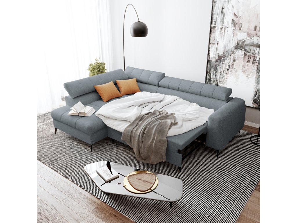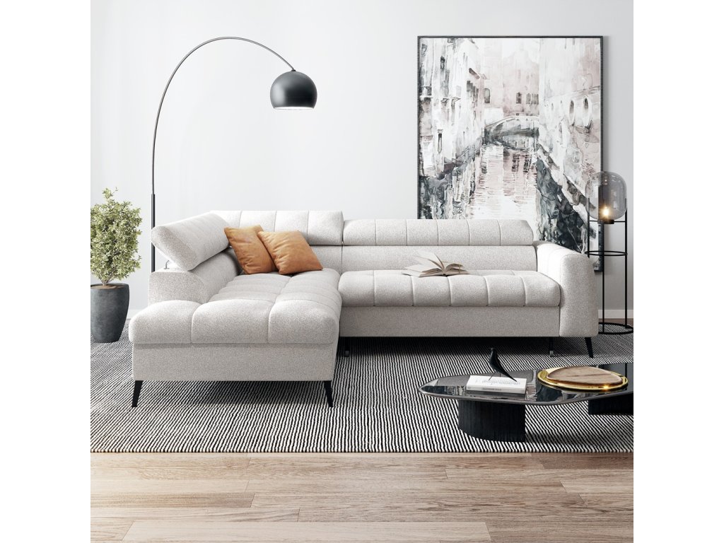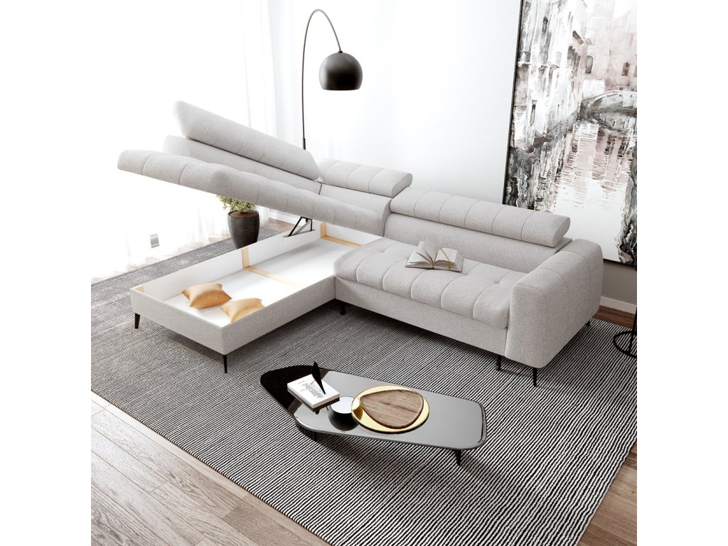 Rohová sedací souprava Vincent L je praktickým a stylovým řešením pro ty, kteří chtějí spojit elegantní design, pohodlí a možnost spaní v jednom kusu nábytku.