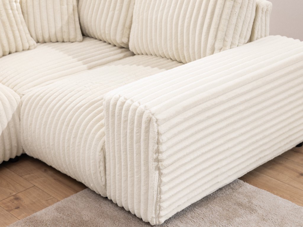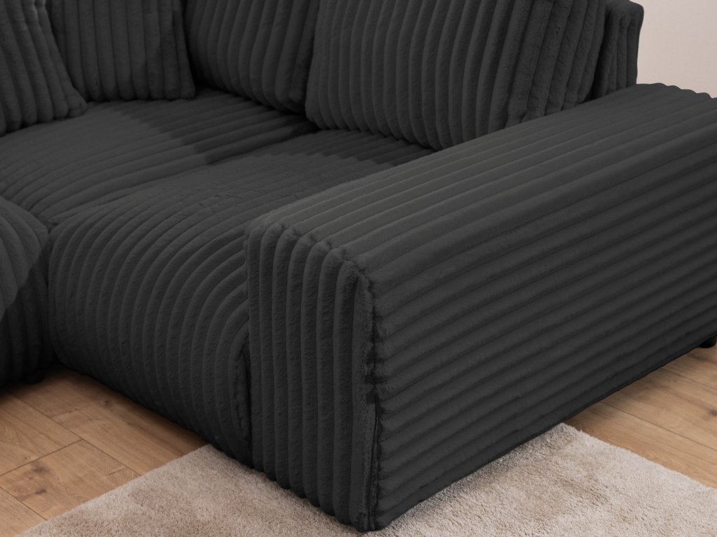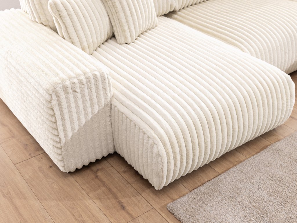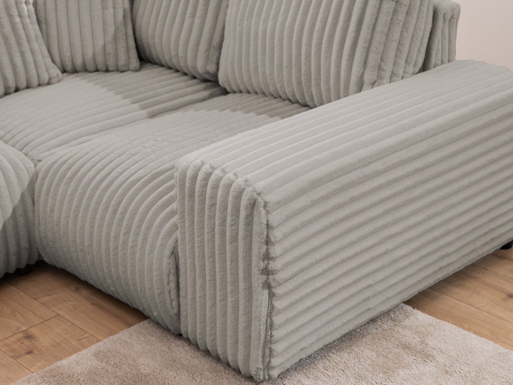 Sedáky jsou vyplněny vysoce elastickou polyuretanovou pěnou a uložené na vlnitých pružinách, což zajišťuje dlouhodobé pohodlí. Volné opěradlové polštáře s výplní pěny a silikonu umožňují individuální nastavení opory zad. Funkce spaní promění soupravu během okamžiku na prostorné lůžko, a prostorný úložný prostor poskytuje místo pro polštáře, přikrývky a další příslušenství.