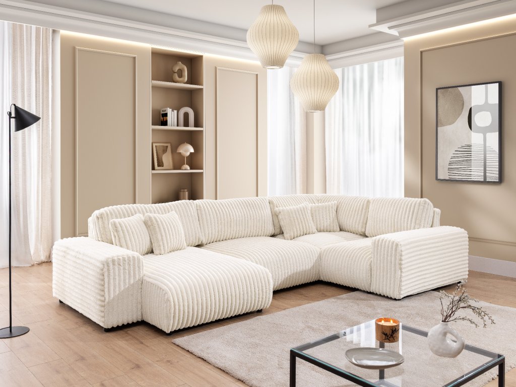 JUSTIN U je prostorná univerzální rohová sedací souprava, která spojuje moderní design, maximální pohodlí a funkčnost. Díky možnosti sestavení na levou i pravou stranu se přizpůsobí vašemu obývacímu prostoru, zatímco kombinace otomanů a modulů poskytuje flexibilitu sezení i relaxace. Elegantní čalounění a kvalitní volné polštáře dodávají interiéru styl a luxusní vzhled.