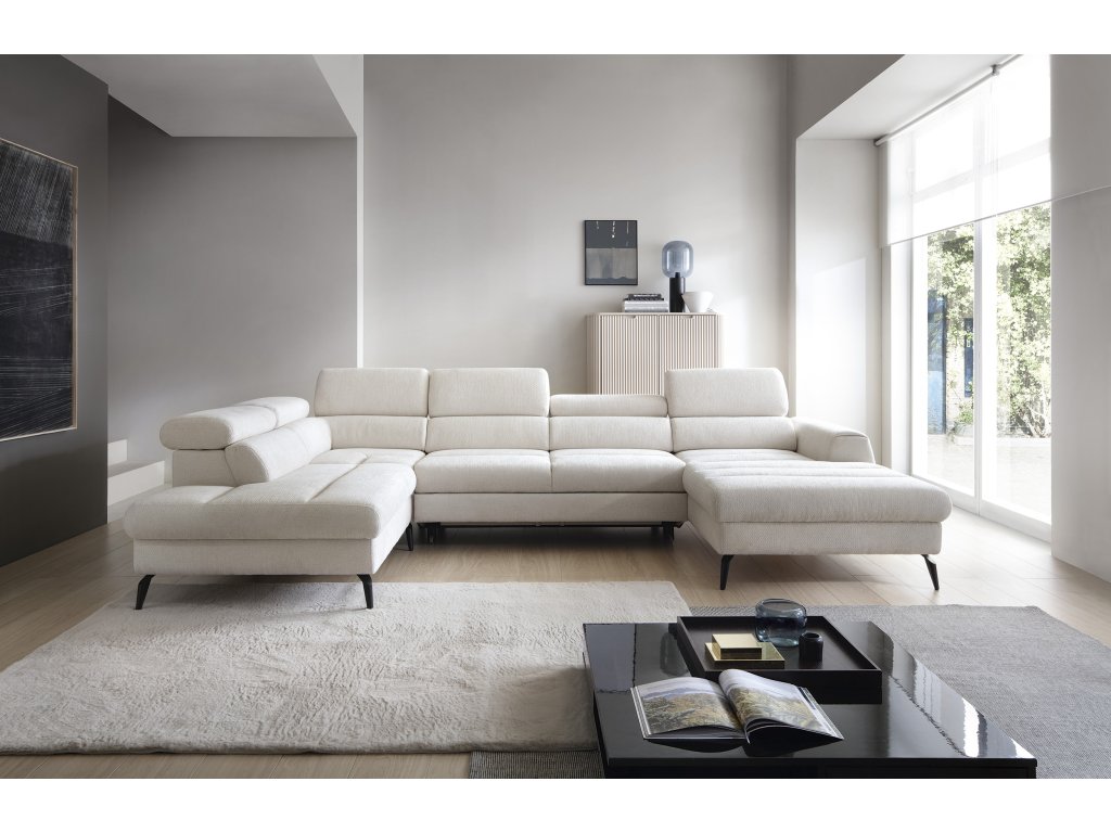 Rohová sedací souprava do U Jazz je prostorná rozkládací sedačka do tvaru U, která nabízí maximální pohodlí, moderní design a praktické funkce pro každodenní používání. Díky svému velkorysému provedení poskytuje dostatek místa pro celou rodinu i návštěvy a stává se přirozeným centrem obývacího pokoje. Možnost levého/pravého provedení – prosíme uveďte do poznámek k objednávce.