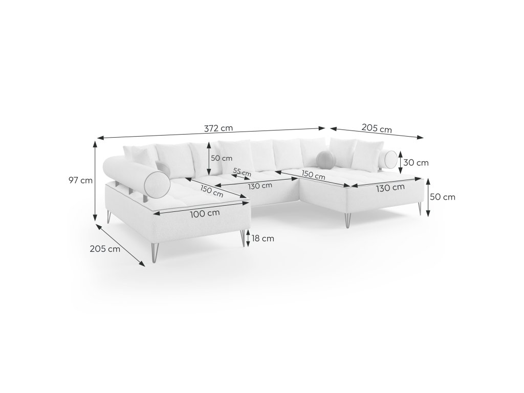 Luxusní sedací souprava do tvaru U Vivienne nabízí velkorysý prostor, výjimečný komfort a elegantní design s jemně zaoblenými liniemi. Díky možnosti výměny bočních stran (levá / pravá orientace) ji snadno přizpůsobíte dispozici místnosti – požadovanou orientaci prosíme uvést do poznámky k objednávce.