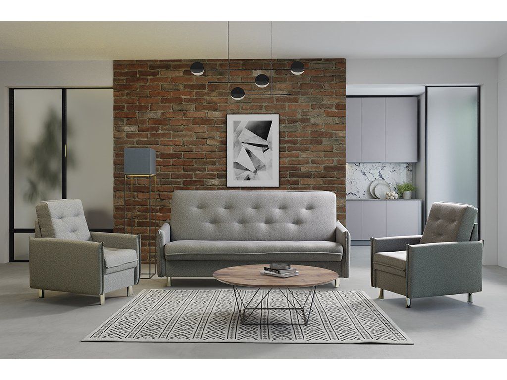 LORETTO je praktická a elegantní rozkládací pohovka, která nabízí pohodlné sezení i funkci příležitostného spaní. Díky jednoduchému a osvědčenému mechanismu ji během okamžiku proměníte v komfortní lůžko. Nadčasový design s jemným prošíváním opěradla a úzkými područkami se snadno začlení do moderního i klasického interiéru.