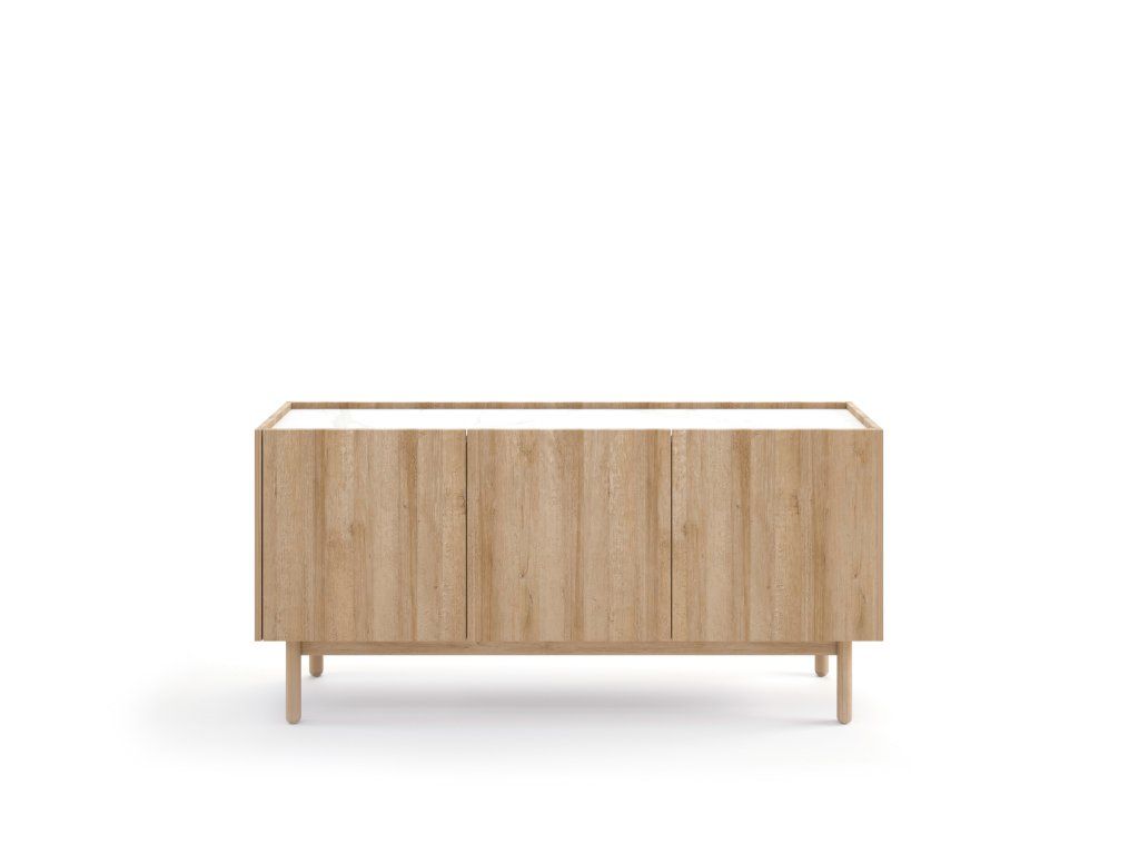 Horní desky v dekoru bílého mramoru dodávají nábytku elegantní vzhled a vytváří praktickou plochu pro dekorace, lampy nebo elektroniku. Vyvýšené nožky dodávají celé sestavě lehkost a zároveň umožňují snadný úklid pod nábytkem.