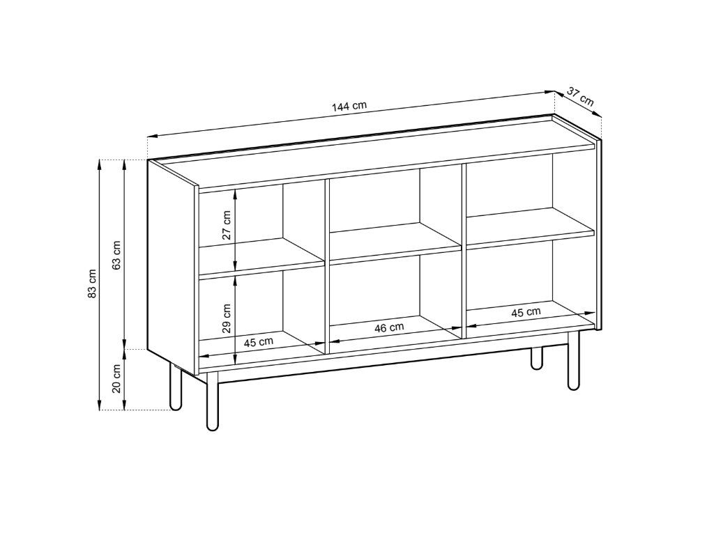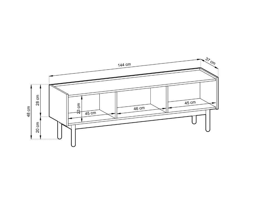 Sestava obsahuje tři praktické kusy nábytku, které společně vytváří funkční a vizuálně sladěný celek. Vyšší komoda nabízí dostatek prostoru pro uložení dokumentů, textilu nebo domácích doplňků, zatímco širší komoda poskytuje velkorysý úložný prostor pro nádobí či další vybavení domácnosti. Televizní stolek je ideální pro umístění televize i multimediální techniky a zároveň poskytuje další úložný prostor.