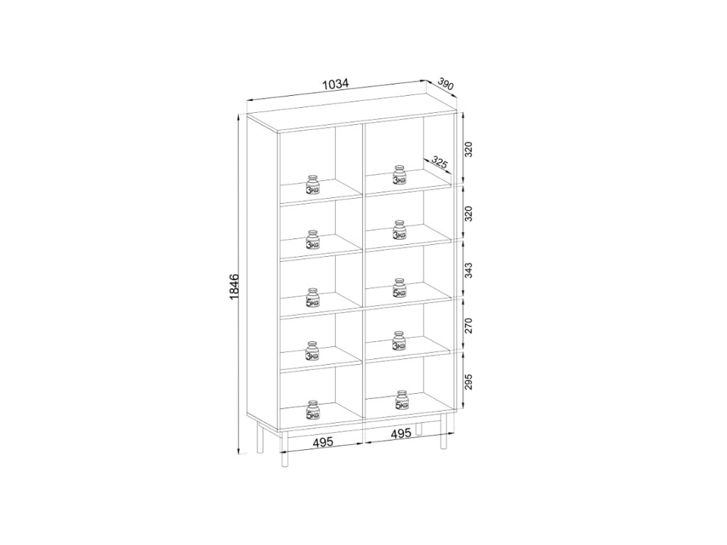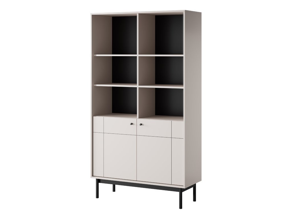 Regál nabízí velkorysý otevřený úložný prostor rozdělený do přehledných polic, doplněný o uzavřenou spodní část pro věci, které chcete mít uklizené mimo dohled. Díky vyvýšené konstrukci na kovových nožkách působí regál lehce a zároveň umožňuje snadný úklid pod nábytkem.